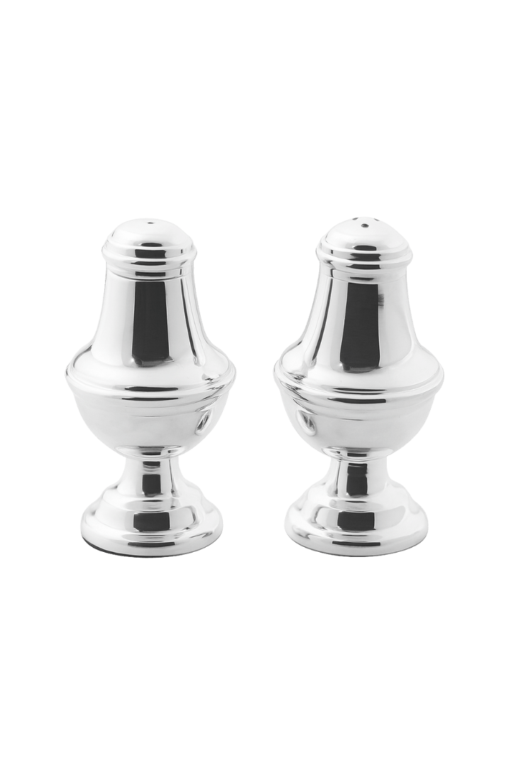 The Heirloom Salt & Pepper Shakers bring timeless refinement to the table with their classic silhouette and lustrous finish. Designed to echo traditional silver service, their graceful curves and substantial feel add an elevated touch to both formal and contemporary settings.