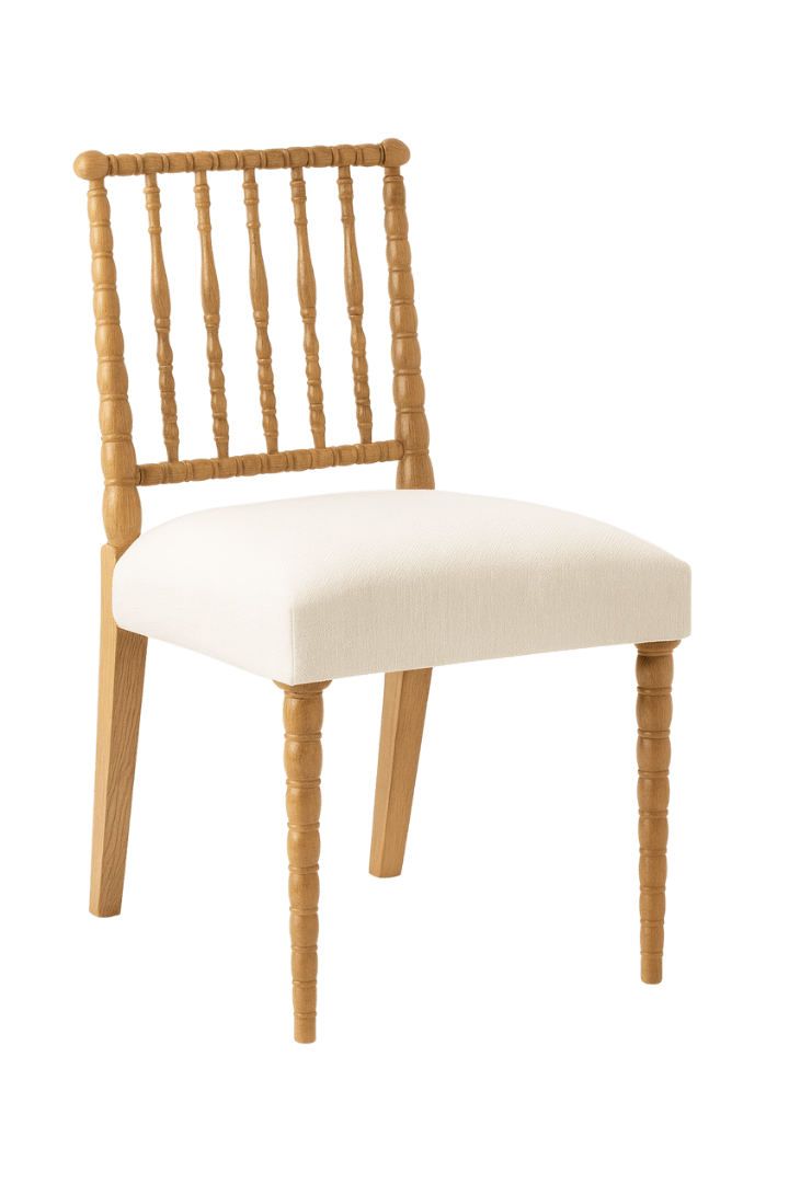 The Keaton Spindle Chair offers a refined twist on a timeless classic. Featuring a sculpted spindle back and beautifully turned legs, its craftsmanship shines through in every detail. Available in Black, White, and Natural wood finishes—all paired with a crisp white linen seat—the Keaton blends traditional elegance with modern versatility. Lightweight, stylish, and endlessly adaptable, it’s an elevated choice for dining settings, ceremonies, and thoughtfully designed event spaces.