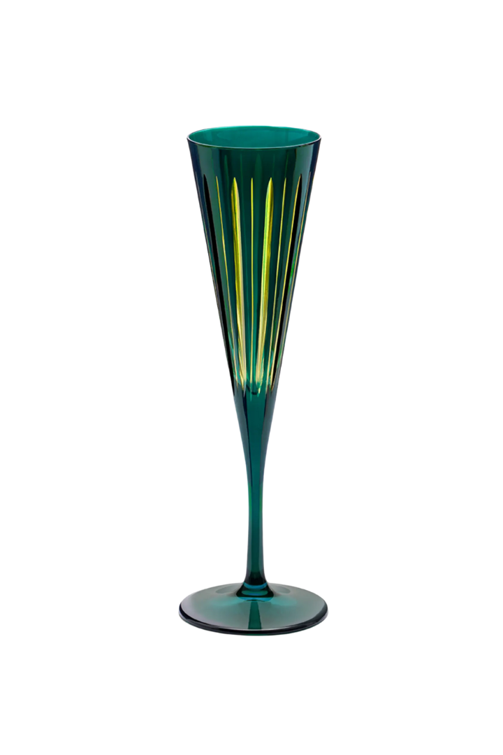 The PRISM Champagne Flutes channel architectural elegance and artisanal finesse, combining bold color combinations with hand-cut glass designed to playfully catch and reflect light. Each piece is crafted of fine glass and finished with L’Objet’s signature attention to detail.