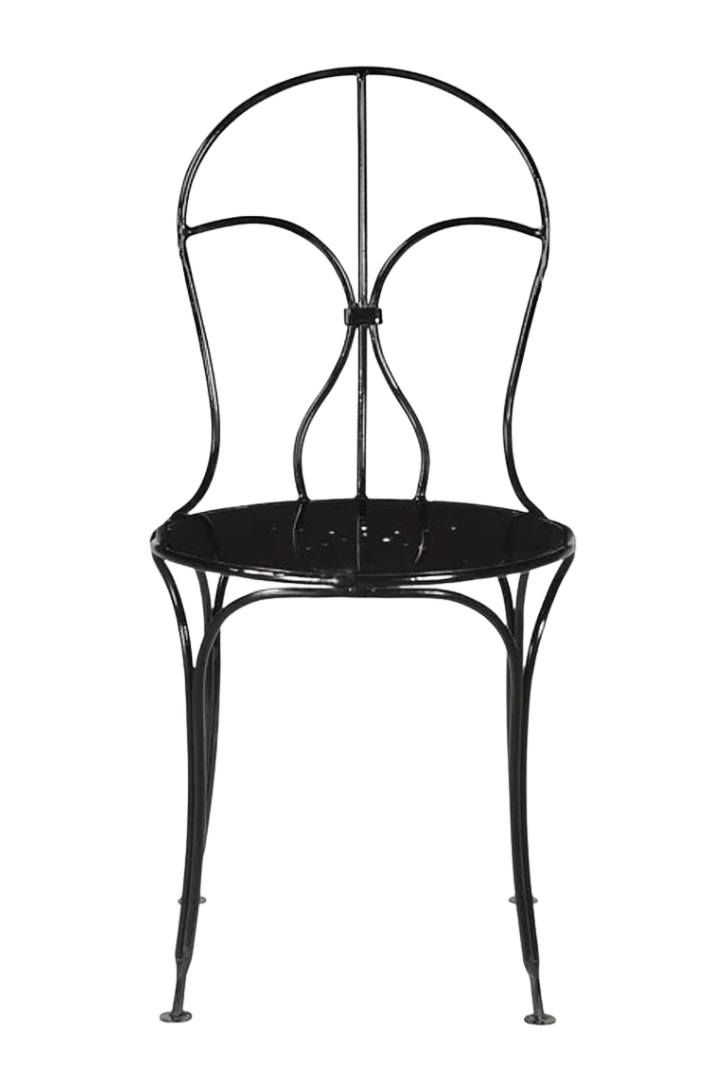 A sculptural iron chair with a romantic silhouette and a refined matte-black finish. Its delicate curves and airy frame offer an elegant, versatile seating option perfect for indoor or outdoor styling. Lightweight yet durable, the Sophie Chair brings a timeless touch to any tablescape or event setting.