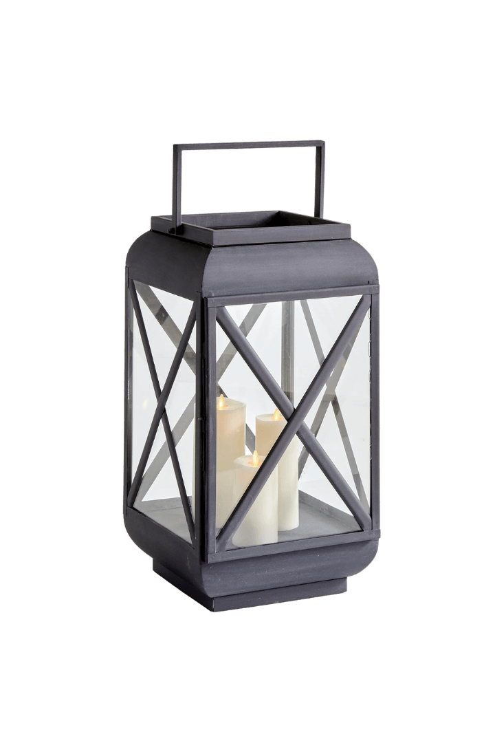 The Terraza Outdoor Lanterns bring timeless elegance and ambient glow to any outdoor or indoor event setting. Crafted in an iron finish with clear glass panels, their classic cross-bar design beautifully frames pillar candles, creating warm, inviting light along pathways, entryways, lounge areas, or dining spaces.