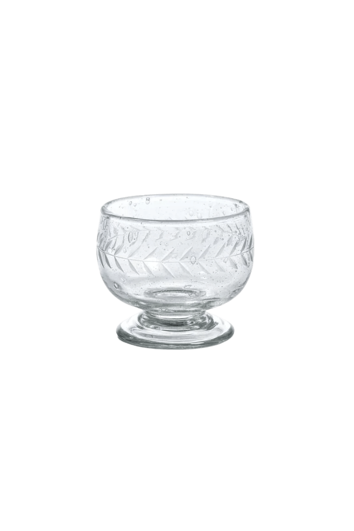 The Tuscan Etched Glassware Collection is handblown with artisanal craftsmanship and old-world charm. Each piece features delicate etched detailing and natural bubble textures, giving the collection its signature character and beautifully imperfect finish.